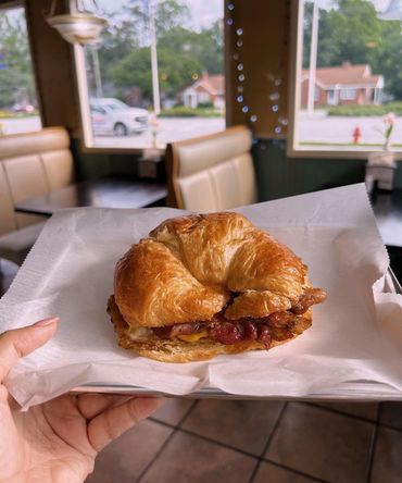 Bacon, Ham, OR Sausage, egg, and American cheese on an english muffin. Substitute Bagel or Croissant + 1.05
